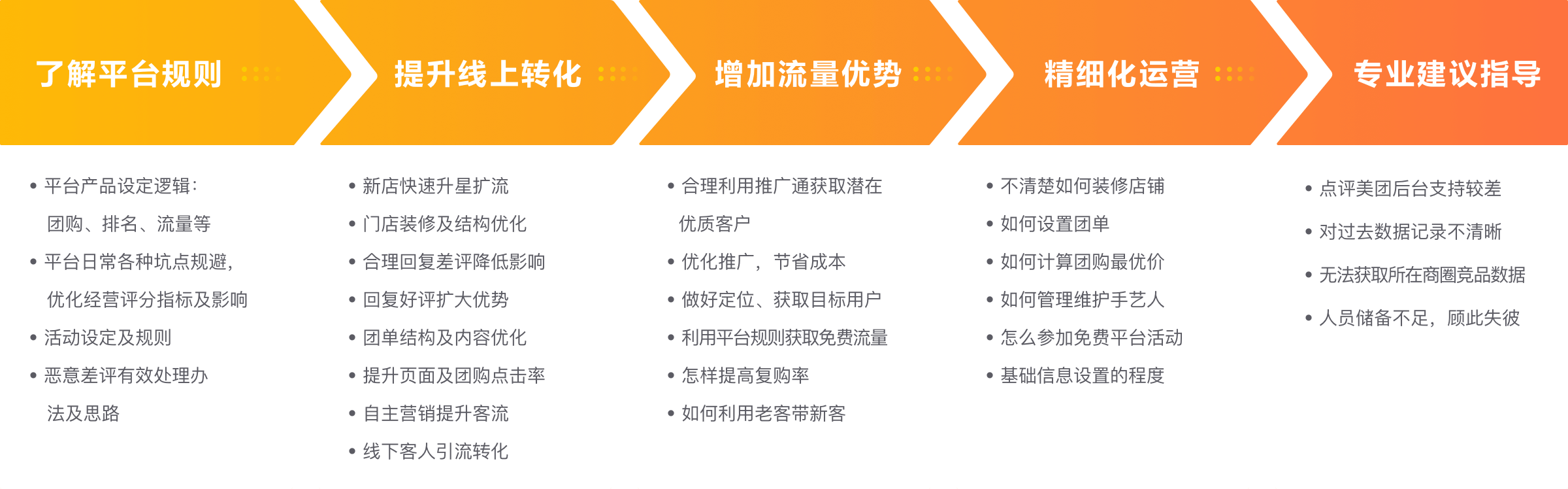 专精于: 平台规则 玩法 | 店铺运营 提升 | 营销引流 导向 | 门店装修 精致 | 平台使用 完善